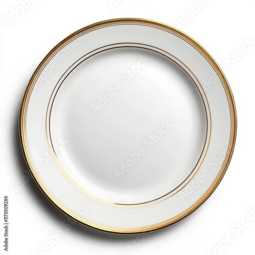 Elegant white ceramic dinner plate with gold accents perfect for dining occasions and home decor aesthetics