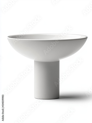 Elegant White Ceramic Pedestal Bowl on Pure White Background with Soft Shadow for Minimalist Home Decor