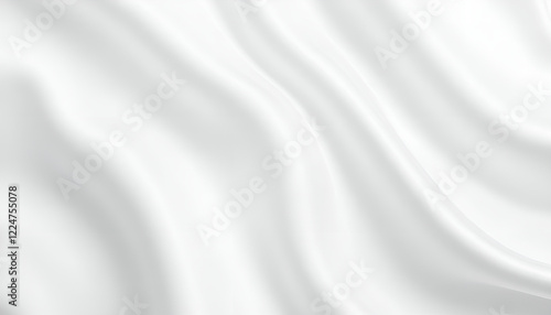 Elegant white silk fabric texture with smooth folds and luxurious shine, copy space