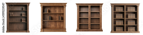 Elegant Wooden Bookcases Filled with Books in a Classic Library Interior Design Setting Showcasing Refined and Timeless Home or Office Decor