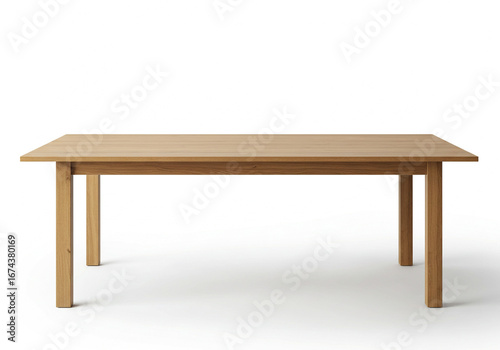 Elegant wooden dining table on white background, perfect for showcasing products or designs.