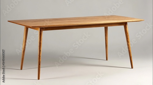 Elegant wooden dining table with a minimalist design, showcasing a natural wood finish and tapered legs.