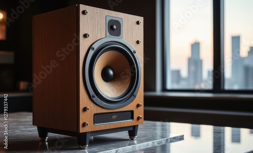 Elegant wooden speaker in modern setting