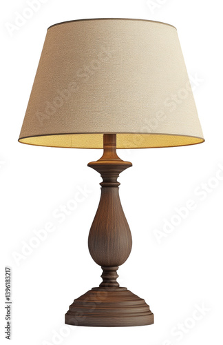 Elegant wooden table lamp with a beige linen shade isolated on transparent background