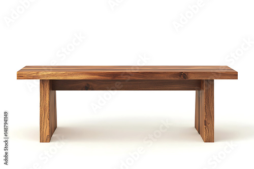 Elegant wooden table with a smooth finish, set against a minimalistic white background