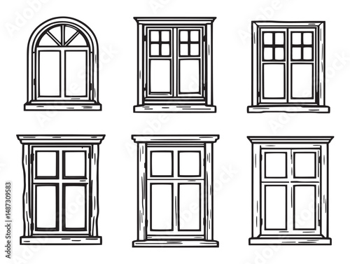elegant wooden window frame minimalist line art vector