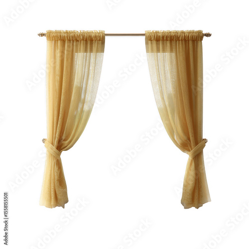 Elegant yellow sheer curtains elegantly draped on a rod, adding a touch of warmth and style to interior decor. Perfect for enhancing the ambiance of any living space.