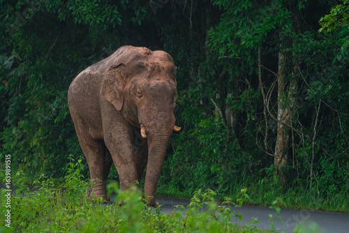 Elephants are large mammals and are the largest land animals. Wild elephants eat plants. They are big, have a small head, big legs, and have a trunk that reaches to the ground. That trunk is the nose.