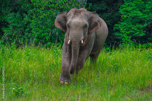 Elephants are large mammals and are the largest land animals. Wild elephants eat plants. They are big, have a small head, big legs, and have a trunk that reaches to the ground. That trunk is the nose.
