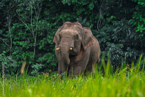 Elephants are large mammals and are the largest land animals. Wild elephants eat plants. They are big, have a small head, big legs, and have a trunk that reaches to the ground. That trunk is the nose.