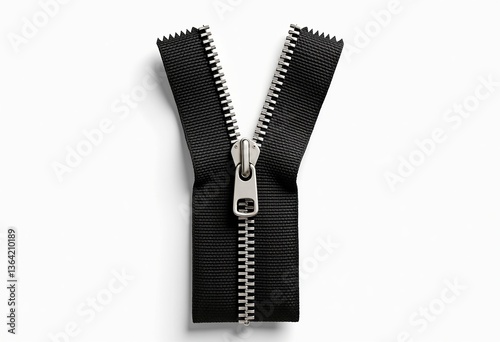 Elevate your visuals with this ultra-high-resolution 8K vector graphic of an unzipped black zipper, showcasing an open silver lock against a clean white background, ideal for impactful presentations a