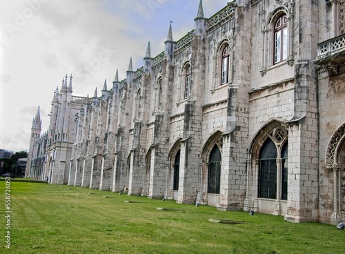 Elongated, side view of the St. Jerome Monastery in Lisbon, Portugal