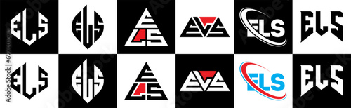 ELS letter logo design in six style. ELS polygon, circle, triangle, hexagon, flat and simple style with black and white color variation letter logo set in one artboard. ELS minimalist and classic logo