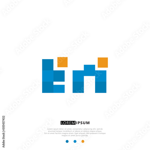 EM E M Logo Monogram with Blue and yellow Colors. modern letter logo design