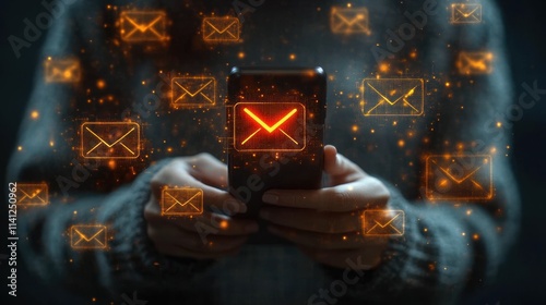 Email Alert Notification and Spam Protection in Modern Workspace with Smartphone and Digital Icons