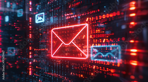 Email and binary code data, technology background.