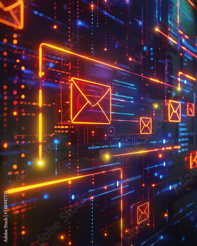 Email encryption visualized with glowing icons, ensuring the safe transit of digital messages
