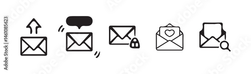 Email icon, Flat art in black and white isolated, Envelope icon in trendy line design, Victor illustration Eps 10.