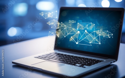 email interface on a laptop, Include elements that suggest an email marketing campaign in progress, clous up