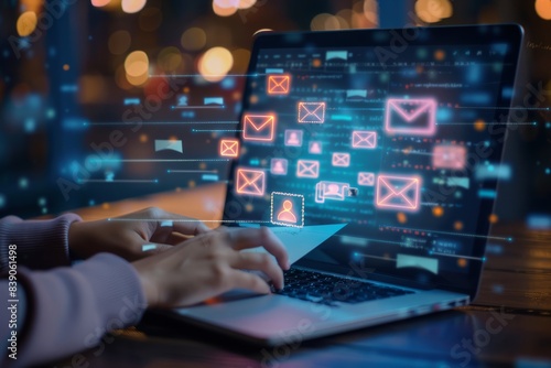 Email marketing concepts, email sent and received notification reminders, sales project managers in the customer list business in the email.