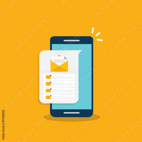 Email service. Mobile smartphone with mail app. Mail service concept.