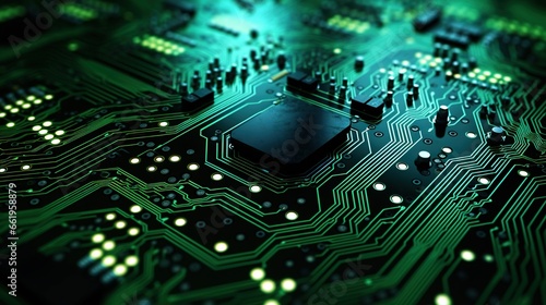 Embarking on the Technological Frontier: Closeup Exploration of an Intricate Circuit Board, Revealing the Marvels of Modern Electronics. Generative AI