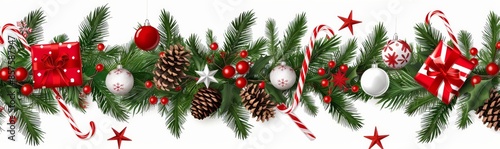 Embellish your home for the holiday season with a delightful Christmas garland adorned with ornaments, candy canes, and a festive touch of magic, creating a charming seasonal atmosphere