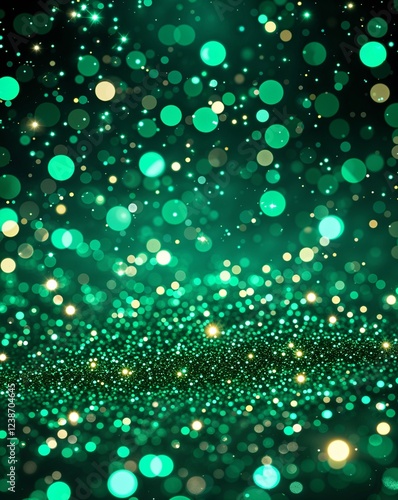 Emerald bright twinkling specks with a rich green glow abstract bokeh glitter concept background