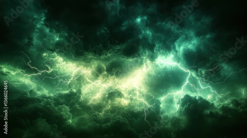 Emerald Fury: A Storm Unleashed, Lightning Tears Through Dark, Ominous Clouds