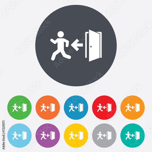 Emergency exit sign icon. Door with left arrow.
