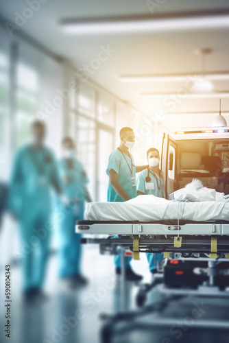 Emergency Medical Team Assisting Patient Transfers on Stretchers in ER