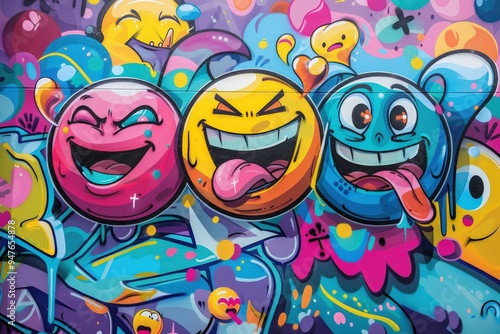 Emojis intertwined with abstract graffiti elements, creating an urban art vibe,