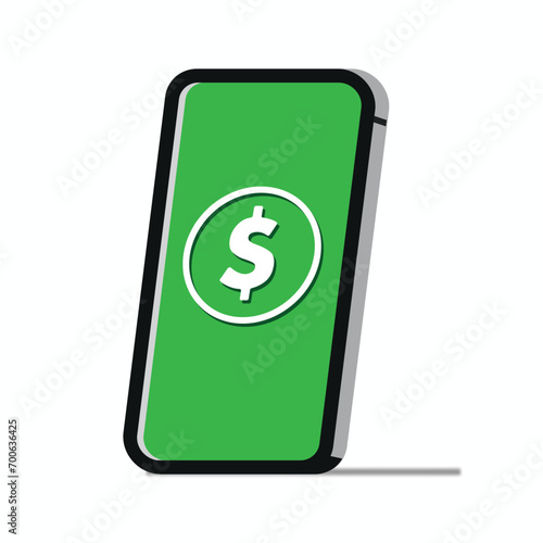 e-money dollar currency screen phone mobile banking illustration vector