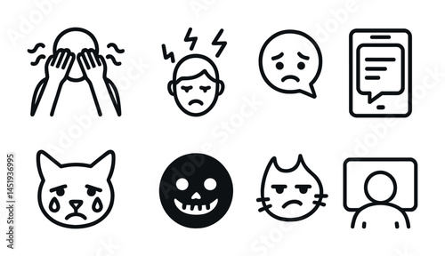 Emotional expression outline icons set – linear, line, emoji and mood symbols