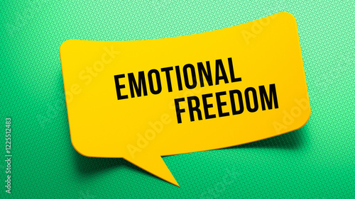 Emotional Freedom text message on the 3D curve speech bubble. Dotted and green background