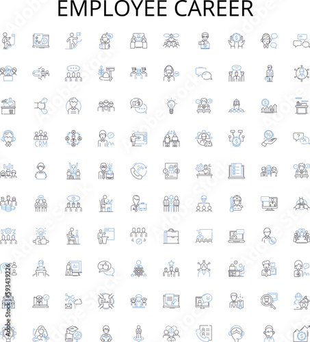 Employee career outline icons collection. Career, Employee, Promotion, Professionalism, Job, Development, Interview vector illustration set. Recruitment, Training, Advancement linear signs