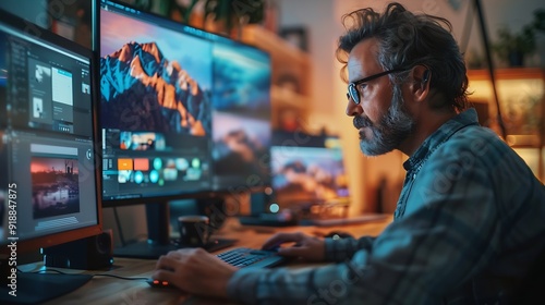 Employee Working On Desktop Computer In Home Office : Generative AI