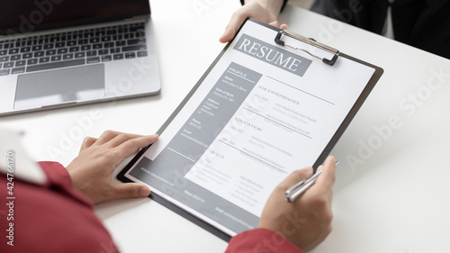 Employer or HR department is reading the resume and interviewing the ability of new employees, Employer is selecting job applicants, Employment and Recruitment Concept.