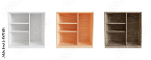 emply white, wooden showcase cabinet on the on white background, 3d render