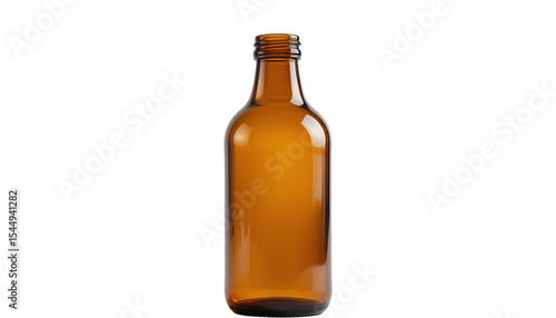 Empty Amber Glass Bottle Without Cap Isolated on Transparent Background – High-Quality Realistic Image