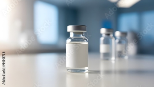 Empty ampoule Vaccine glass bottle vials on laboratory desk.
