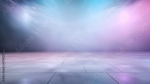 Empty background scene. Texture dark concentrate floor with mist or fog. Spectrum light color. Generative AI.