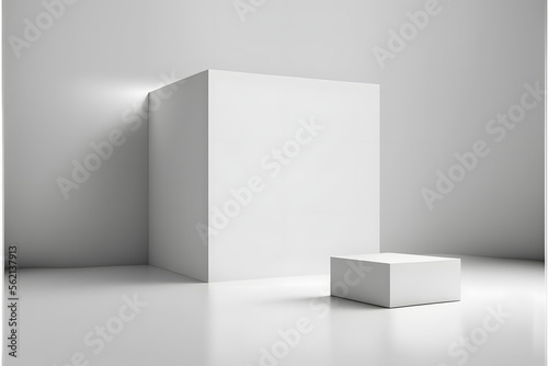 Empty background white stage product studio 3d backdrop scene of blank modern art interior floor or room wall podium template platform display and stand show pedestal on simple presentation wallpaper.