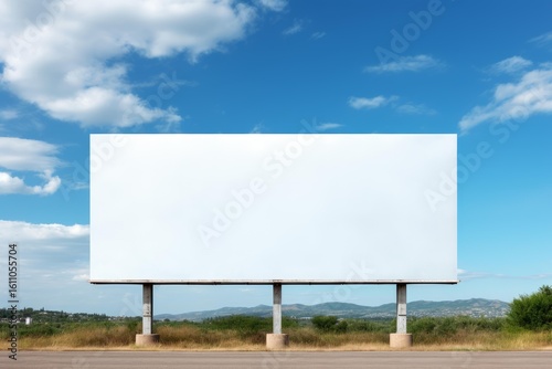 Empty billboard providing advertising space along a highway with a bright blue sky and clouds