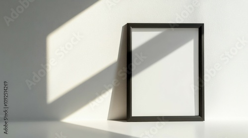 Empty black frame casting a shadow on a white surface