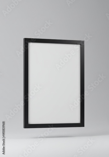 empty black frame floating in minimal gray background, perfect for showcasing photos, artwork, or design projects. modern decor element for home or office aesthetic