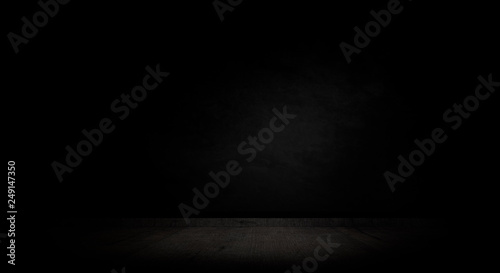 Empty black studio room. Dark background. Abstract dark empty studio room texture. Product showcase spotlight background. Dark Studio Gallery