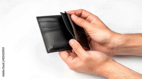 Empty Black Wallet in Male Hands Cut Out in 8K Resolution