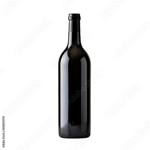 Empty black wine glass bottle isolated on transparent background