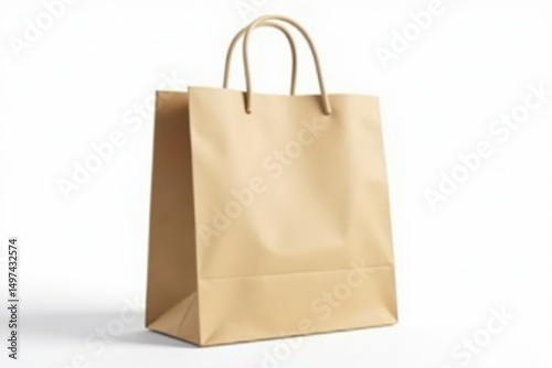 Empty brown paper shopping bag, isolated on white background, empty bag, environment, shopping experience
